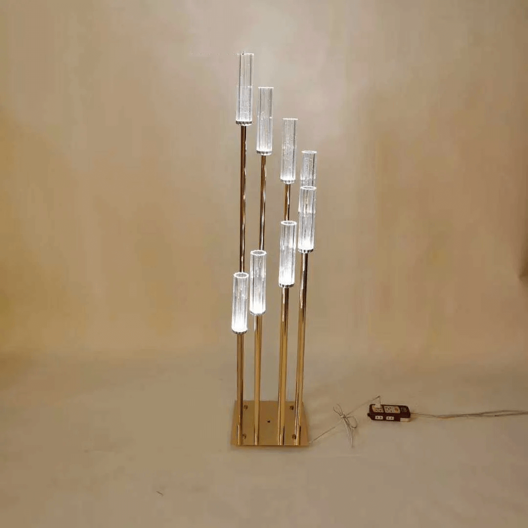 Bougeoir strié doré centre de table led base carrée de 8 branches.